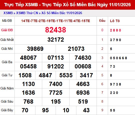 Trước khi đi vào dự đoán kết quả xổ số miền bắc ngày 12 tháng 1 năm 2026 chúng ta cùng xem lại bảng kết quả XSMB đã mở thưởng chiều qua nhé!