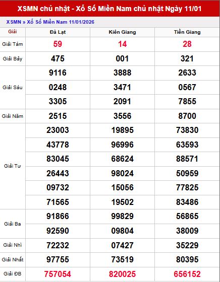 Bảng kết quả XSMN trong lần mở thưởng trước với 3 đài Đà Lạt – Kiên Giang –Tiền Giang có nhiều nhóm số nổi bật, chạm – đầu – đuôi đáng chú ý nhằm phục vụ việc dự đoán xổ số miền nam ngày 18 tháng 1 và tham khảo cho những kỳ quay tiếp theo